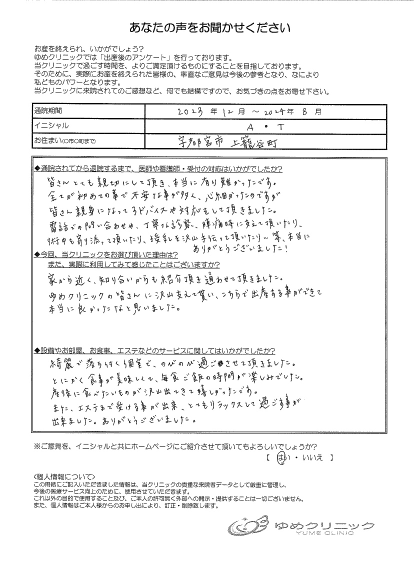 ゆめクリニックの皆さんに沢山支えて貰い、こちらで出産する事ができて