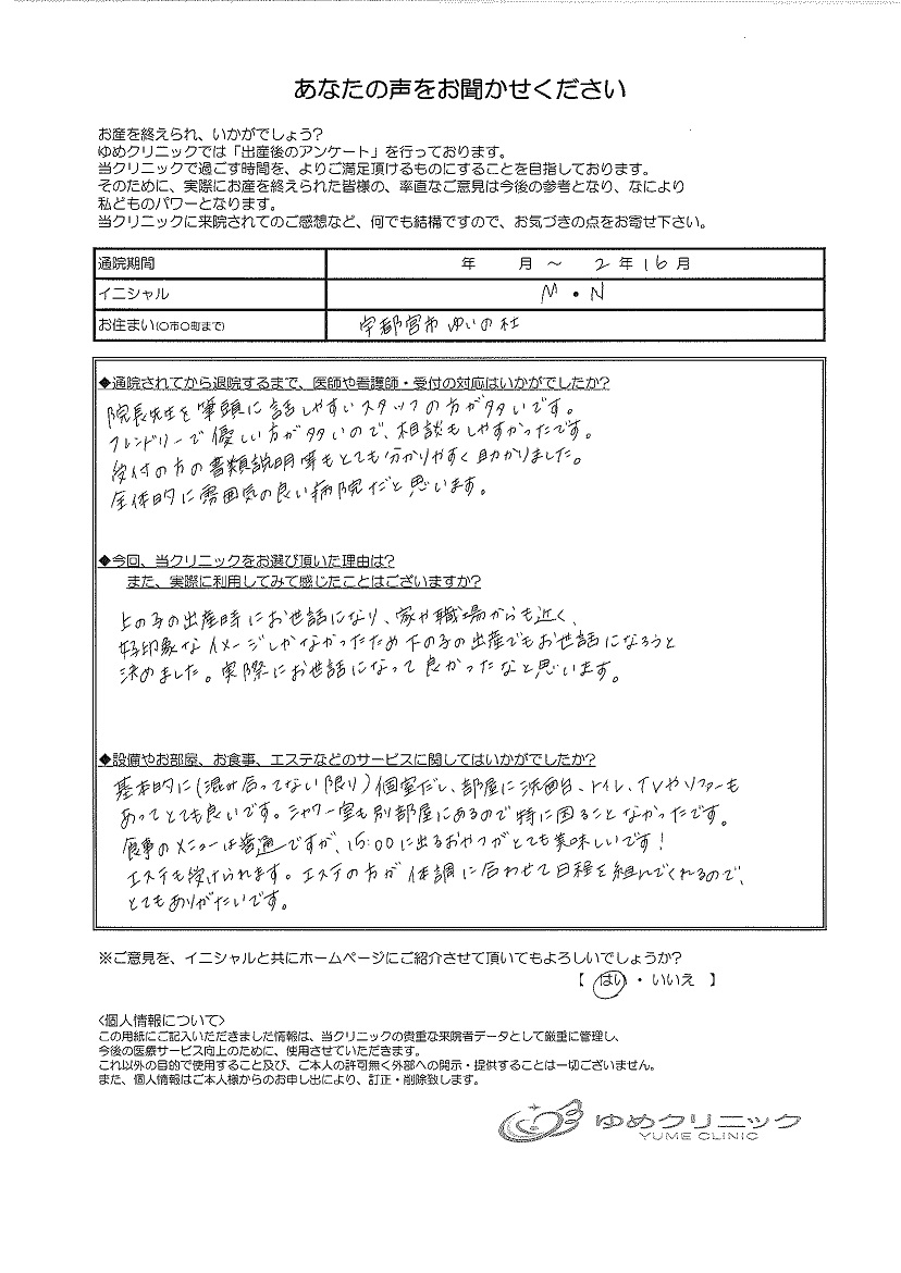 上の子の出産時にお世話になり、家が職場からも近く、