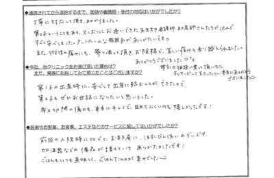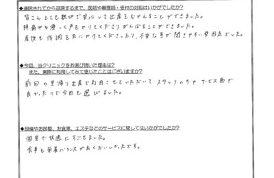那須烏山市 M・A様 2025.12.16 ◆通院されてから退院するまで、医師や看護師・受付の対応はいかがでしたか? とても人気のクリニックで待ち時間がありますが… いつも丁寧に対応してくださって感謝です。 &nbs... > 続きを読む